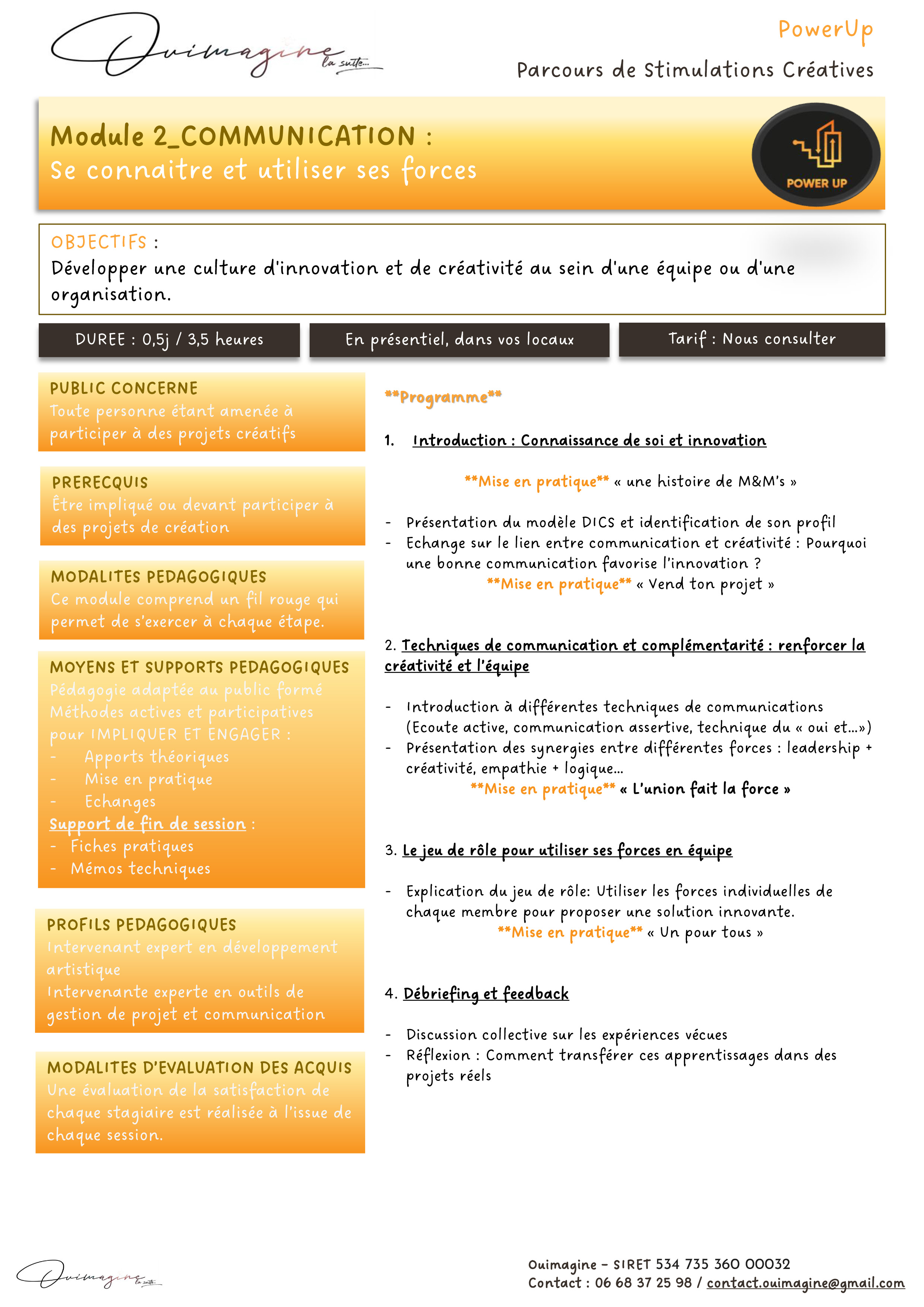 Chaque module est conçu pour être interactif et immersif avec une alternance d’apports pratiques, théoriques et des debriefs.